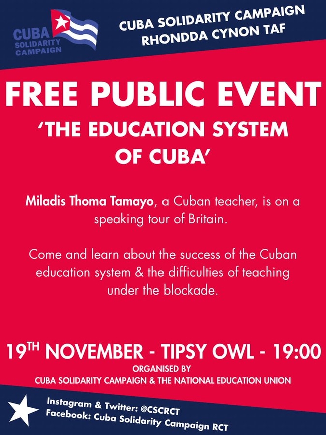 Join Miladis and CSC Rhondda Cynon Taf to learn about the success of the Cuban education system and the difficulties of teaching under the blockade.