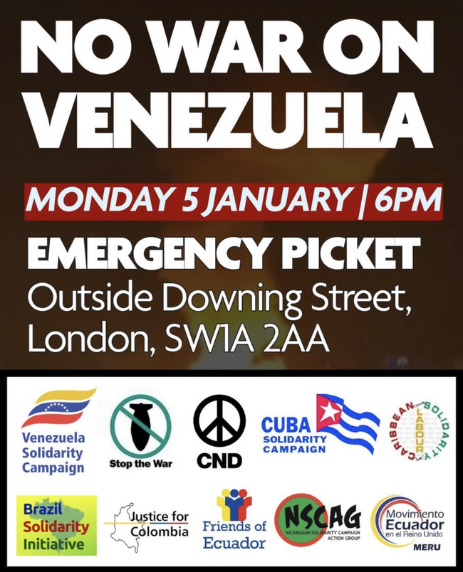 - Stop the US invasion and bombing of Venezuela