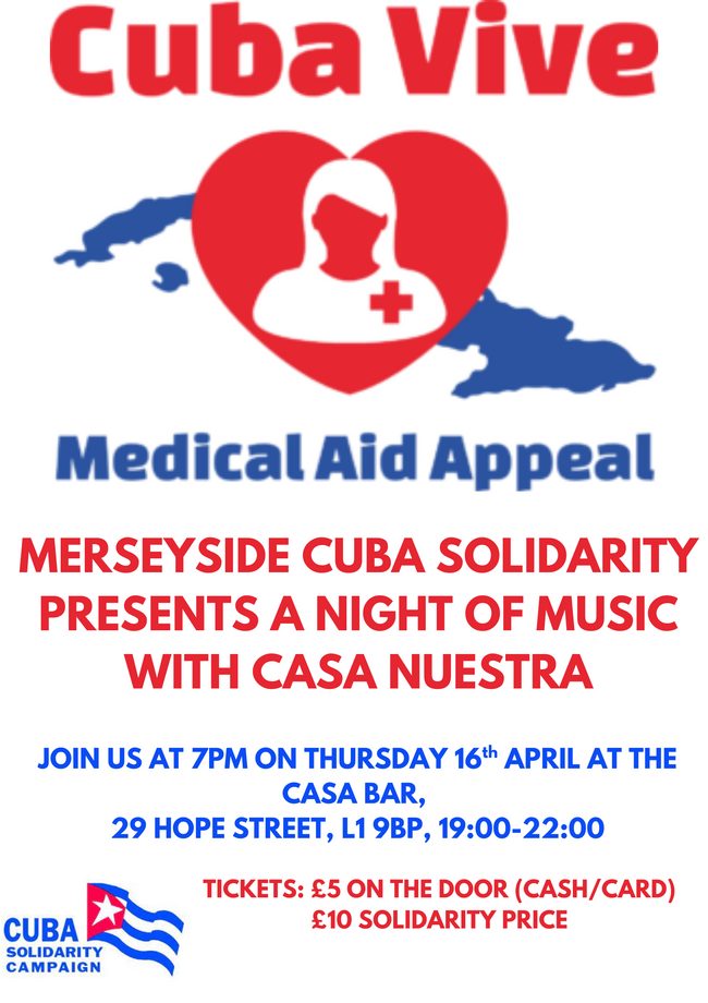 Join Merseyside Cuba Solidarity for a night of music with Casa Nuestra to raise money for the Cuba Vive Appeal.