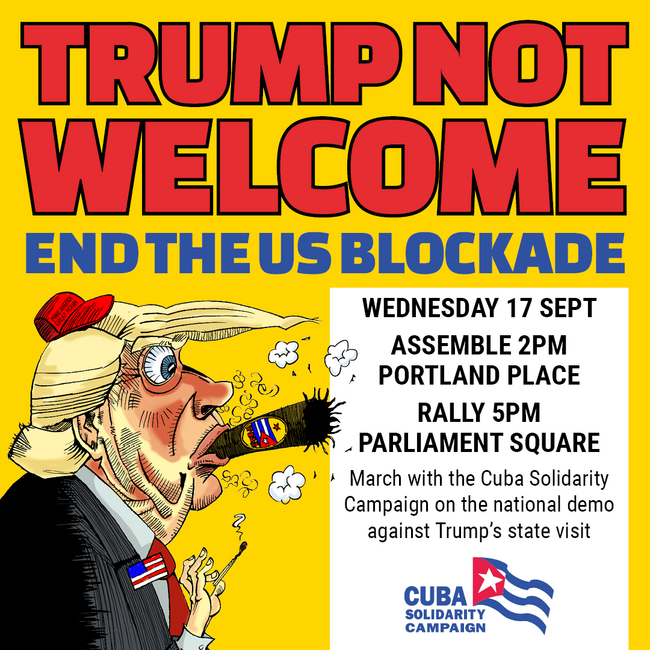The Cuba Solidarity Campaign will be marching in London on 17 September alongside the Stop Trump coalition to oppose the state visit of Donald Trump.